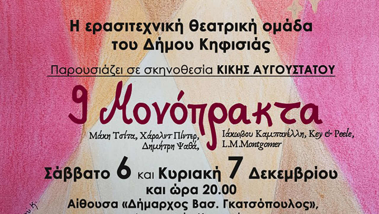 Η Ερασιτεχνική Θεατρική Ομάδα του Δήμου Κηφισιάς παρουσιάζει σε σκηνοθεσία Κικής Αυγουστάτου