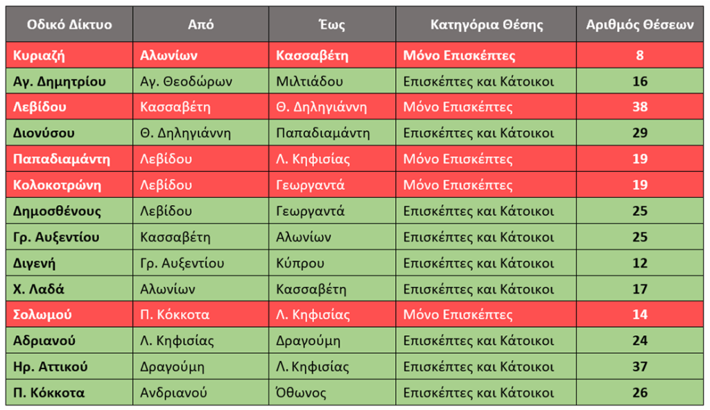 Με Πράσινη Γραμμή οι θέσεις ελεγχόμενης σταθμευσης για κατοίκους και επισκέπτες.